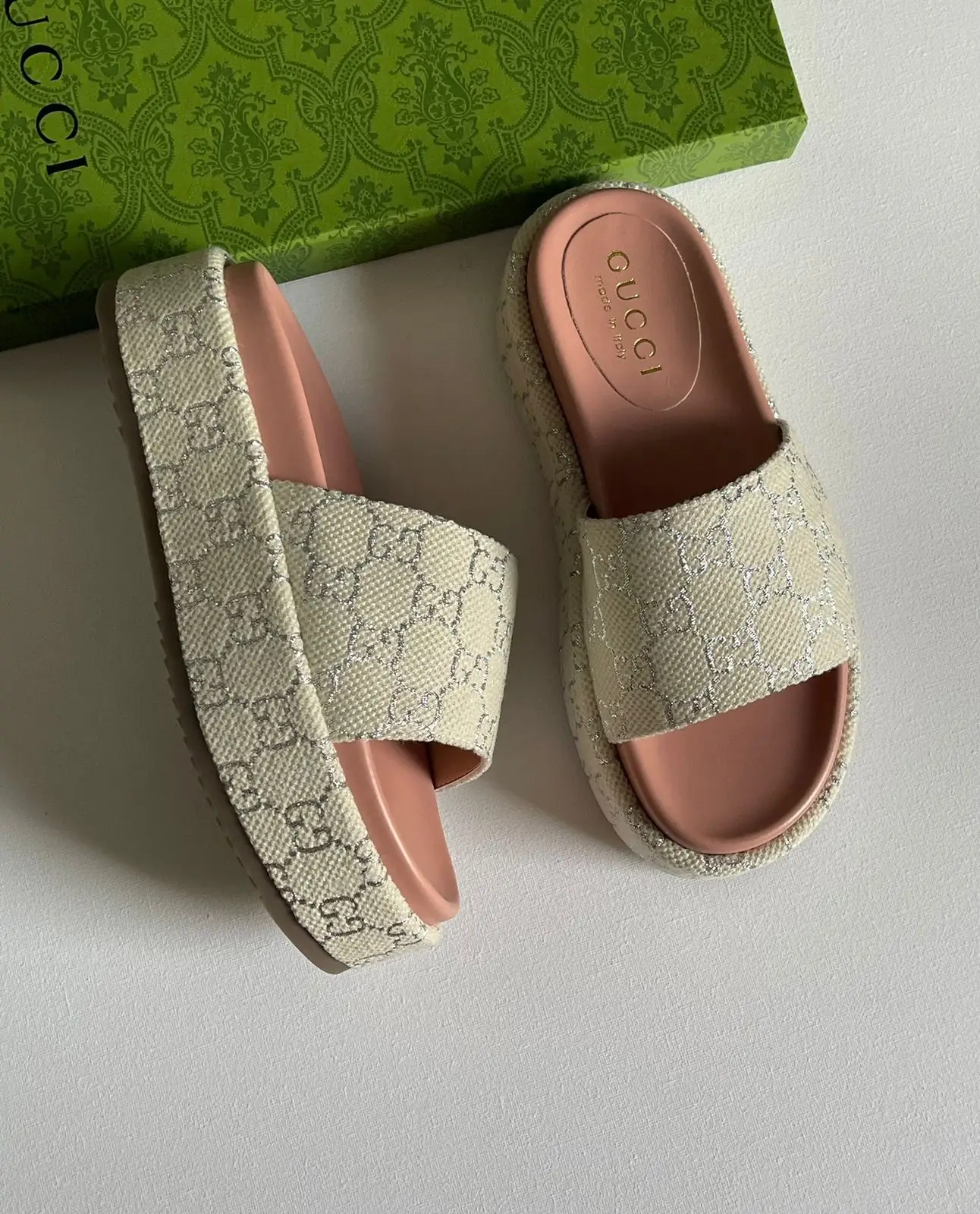 Step into luxury with the GUCCI Angelina Platform Slide Sandals—an iconic blend of bold design and effortless elegance. Crafted from high-quality materials, these sandals feature a chunky platform sole for added height and comfort, while the sleek slide silhouette ensures easy wear. Adorned with GUCCI’s signature detailing, these sandals exude sophistication, making them the perfect statement piece for any fashion-forward wardrobe. Whether paired with jeans, dresses, or resort wear, the Angelina Platform Sandals deliver unmatched style and confidence.