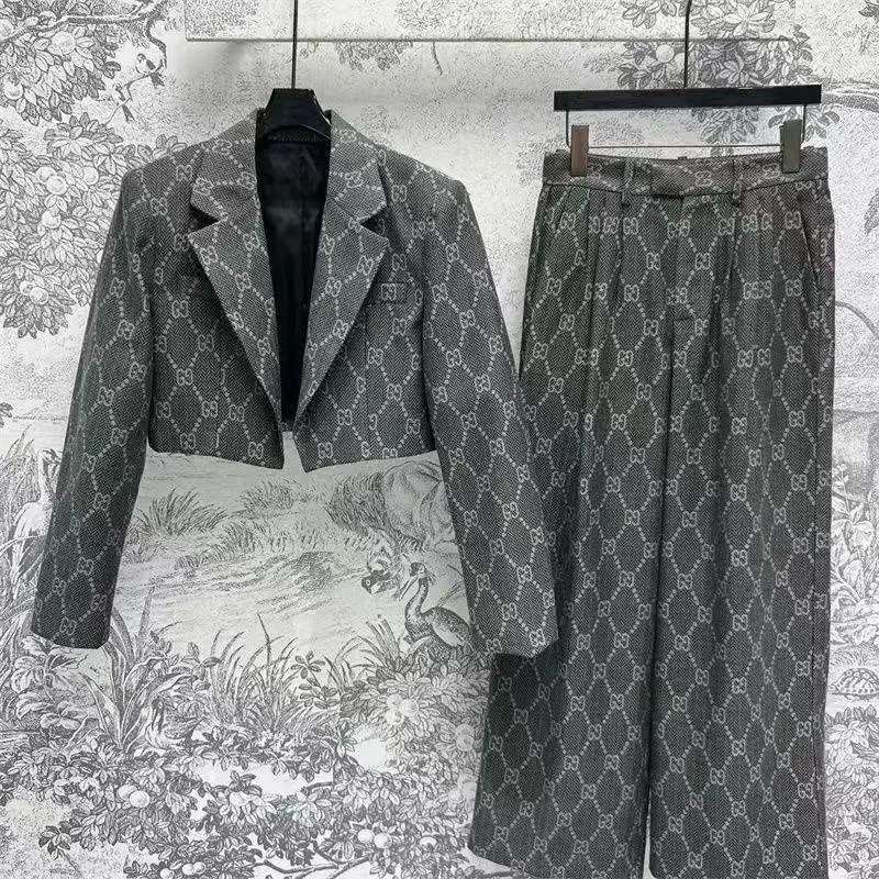 Every detail, from the precision of the stitching to the flawless alignment of the pattern, reflects GUCCI’s unwavering commitment to excellence. This suit set is more than an outfit; it is a sartorial investment for the discerning woman who commands attention in the boardroom, at a luxurious luncheon, or at any high-stakes social gathering.