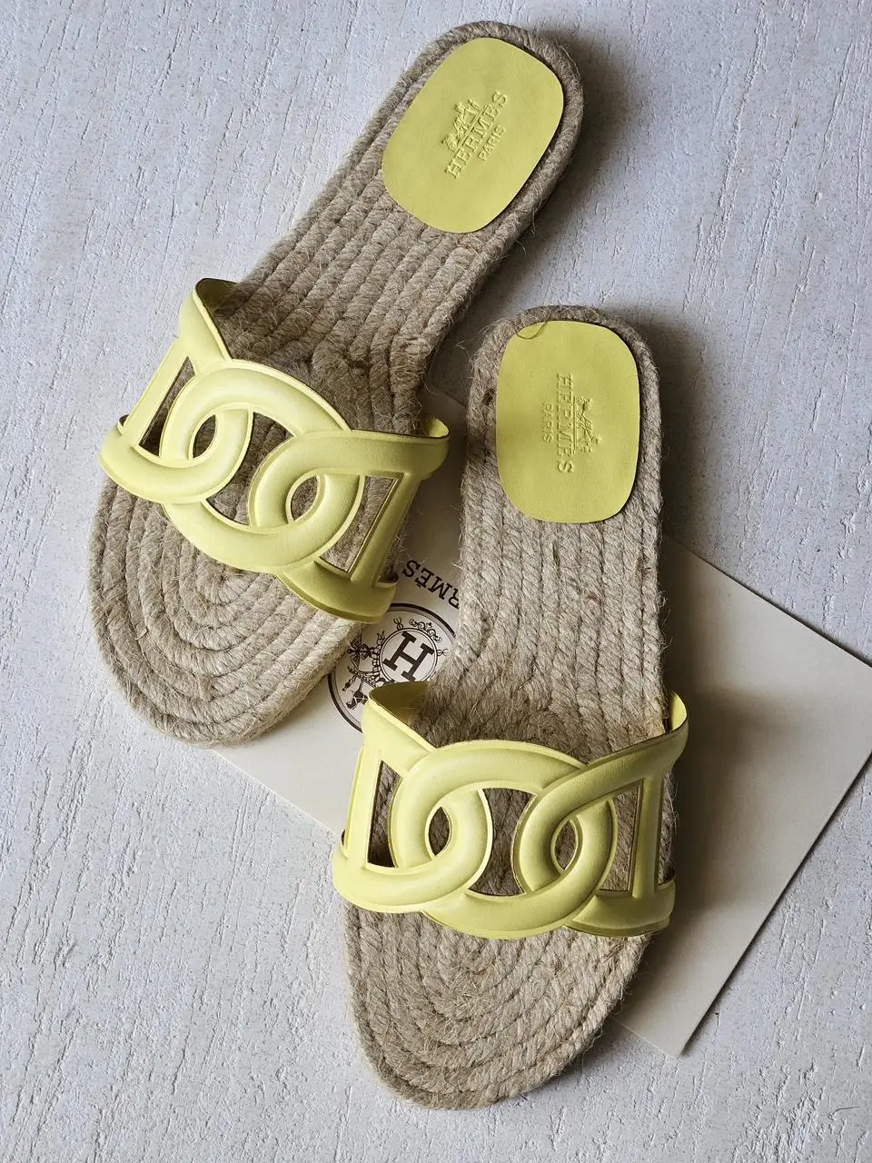 Experience the pinnacle of luxury craftsmanship. OurHERMES Leather Espadrilles Sandals feature buttery-soft leather, a hand-finished jute sole, and impeccable super master quality construction for effortless, timeless style.
