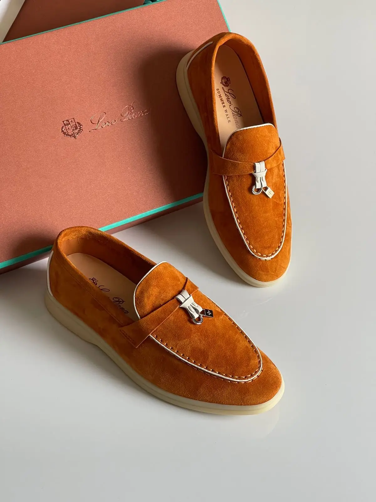 The defining feature is the iconic LORO PIANO charm—a subtle, elegant metal ornament that adds a touch of refined personality without ostentation. Built upon a flexible, lightweight sole, the Charms Walk Loafer ensures all-day comfort, making it the perfect companion from sophisticated business meetings to leisurely weekend strolls.